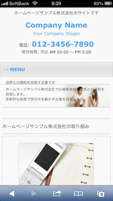 このテンプレート なんとレスポンシブなんです PCでもスマホでもHTMLを変えることなく見れるのです HTMLを理解しなくても提供いただいている会社のページに解説があるので参照しながら修正していきます メインを作り込んでからサブページを作りましょう サイトのヘッダーとフッターは共通化されるのでメインで作り込めばコピー&ペーストすればサブページは簡単です 提供いただいている会社のリンクは消さないようにしましょうね